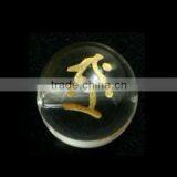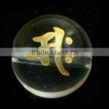 12mm Natural Round AA Grade Rock Crystal Carved Golden 4-symbol Beads