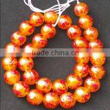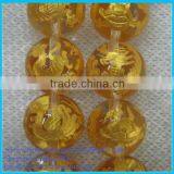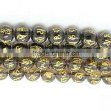 12mm Rock Crystal Carved 7 Sanskirt Printing Gold Beads for Sale