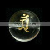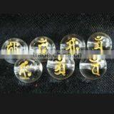 12mm Natural Round AA Grade Rock Crystal Carved Golden 7 Sanskirt Letter Beads for Jewlery