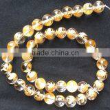 10mm Clear Quartz Carved Golden 7 Sanskirt Letter Beads String for Wholesale