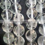 12mm Rock Crystal Carved Golden 7 Sanskirtr Gemstone Beads Strand