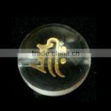 12mm Natural Round AA Grade Rock Crystal Carved Golden 7 Sanskirt Letter Beads for Jewlery