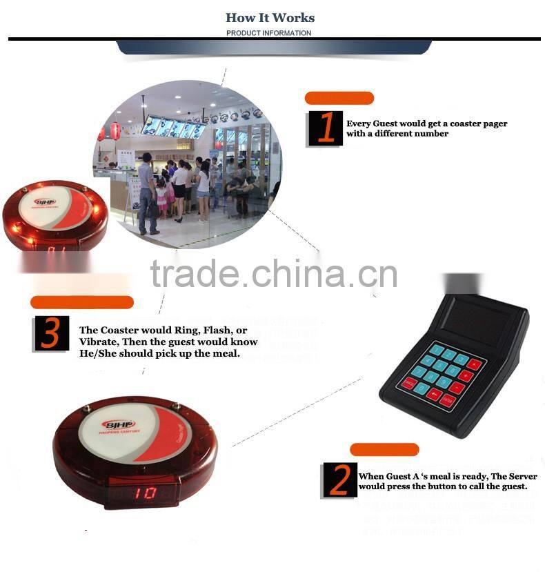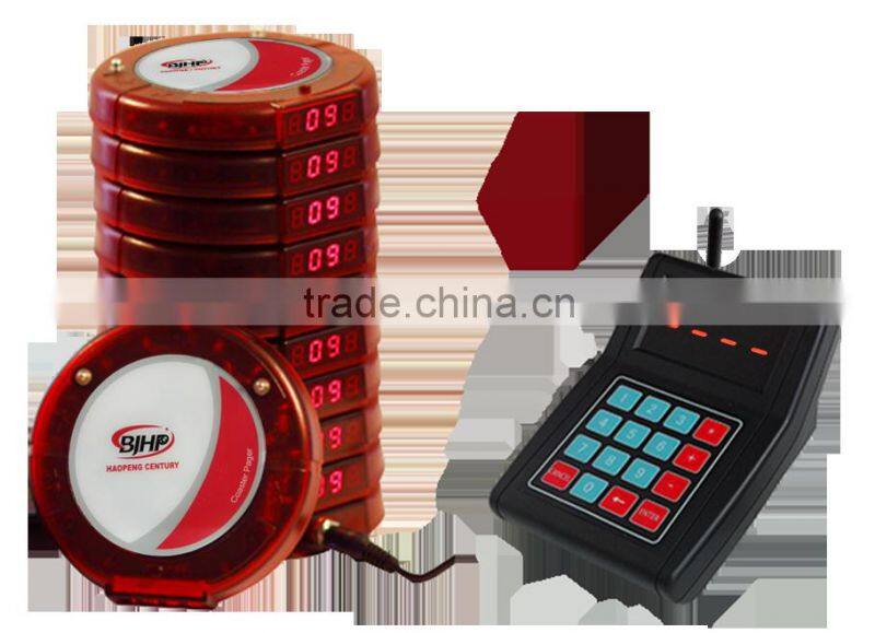 Wireless restaurant pager system is made of transmitter and receivers,it is very convient to operate and help you do a lot of work .it is faster than waiters.