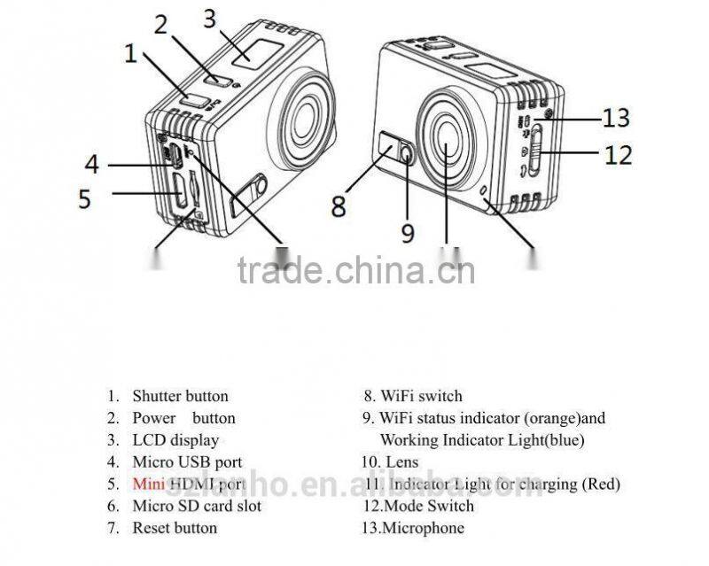 1.Full HD 1080P waterproof wifi sport camera for Iphone/tablet/smart phone