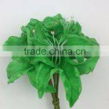 pu Green Lily Flowers Artificial Wedding Flower Cheap Wholesale 6 Head Lily Bouquet