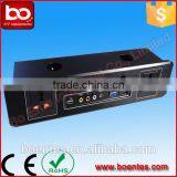 Hotel media hub is widely used on office and hotel furniture, high tier office, luxury conference table, hotel and multimedia classroom and training room. Can be embedded in wall or in furniture.