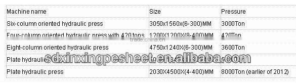 Our company adopted the most advanced Oriented type pressing machine,the pressure can be up to 1500t/M2, The pressure is ten times of normal pressing machine.The most important is that we have guide post which make the pressing machine rise steadily and the sheet can be strengthened evenly and smoothly.