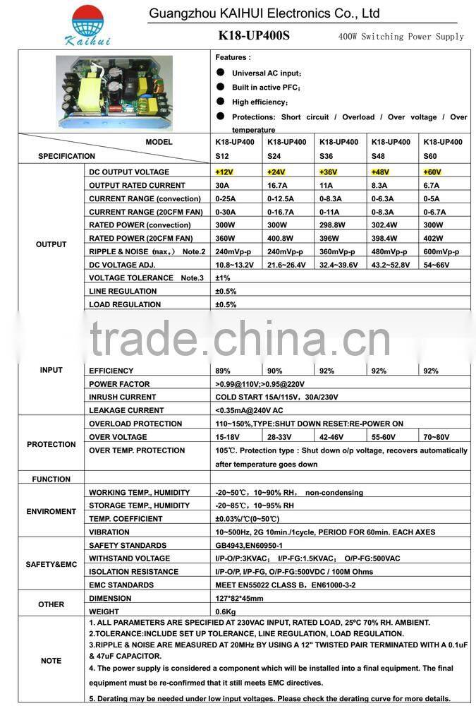50/60Hz Single Output KAIHUI Power 12V 42A SMPS 500W Led Power Supply