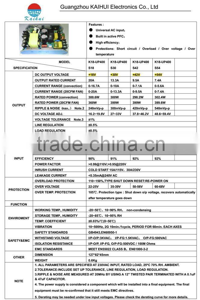 | Model Number | K18-UP400S54 | Output Power | 301 - 400W | |