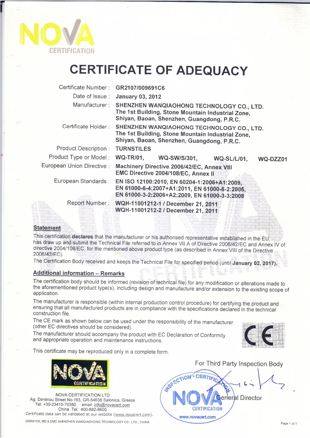 Most of products from WQH has acquired CE certificate. and our factory also gained ISO9001 Quality certificate. Our main markets are South-East Asia, South Asia, Middle East, Euorpe, Africa, South America.