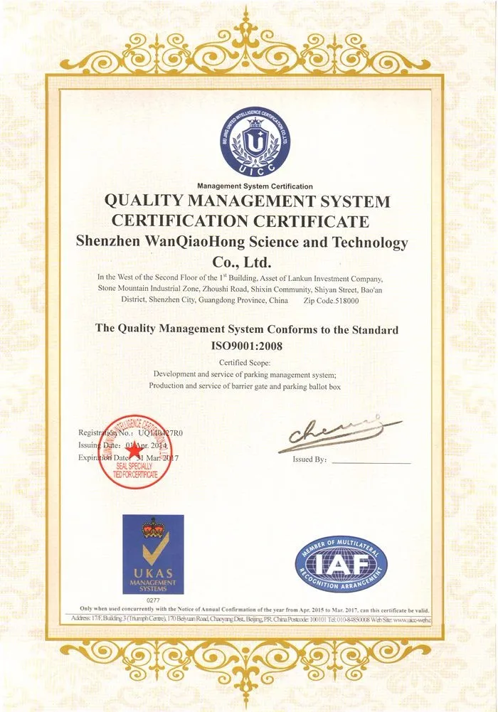 SHENZHEN WANQIAOHONG TECHNOLOGY (WQH) TECHNOLOGY CO.,LTD was founded on 2008, with its headquarter in SHENZHEN, Which is a professional Hi-Tech enterprise specialized in the research development and manufacturing of parking system and turnstile gate system.