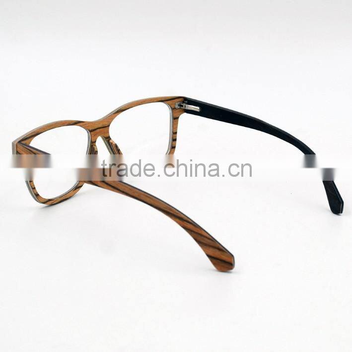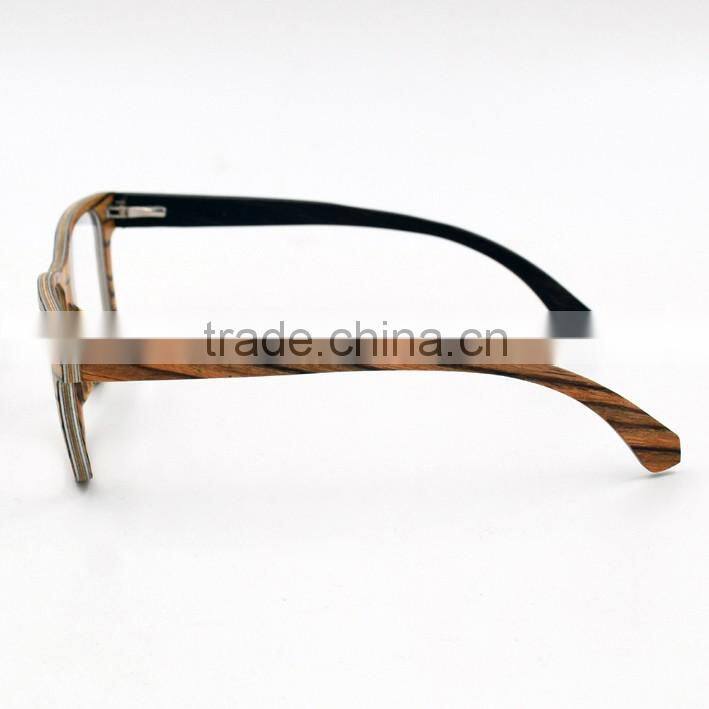 2016 Fashion Wood Optical Frame Laminated Wood Aluminum Prescription Glasses Customized Lens