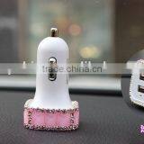 Luxury Rhinestones Dual Usb Car Charger Bling Bling Diamond Female Car Charger Adapter