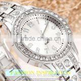 Custom Sales Alloy Promotional Wrist Watch PC21S Movement Silver Watch With Bright Stone on the Case