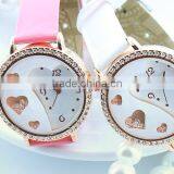 Hot Leather Band Crystal Dail Heart-shaped Hollow Quartz Wrist Watch for Lady, Gift Watches, Women Watches