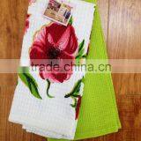 2pcs Yarn Dye Waffle Tea Towel With Flower Design Silk Screen Printing
