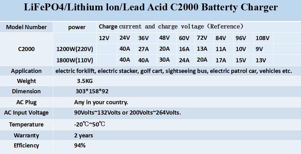 Charging For Patrol car, Electric Golf Carts, Electric Stacker, Electric Forklift, Electric Tractor,