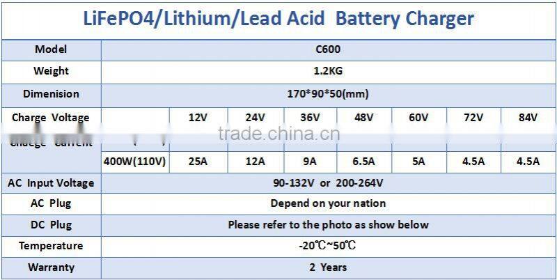 C series --- 2015 new products, adopted new techniques. Advantage: smaller, powerful, high efficiency, high reliability, but low price; No PFC, zero voltage charging function, charge voltage range: 12V~400V, power range: 120W~600W, AC input range selectable by switch, maximum efficiency 94%, built-in fan, no fan, waterproof for option.