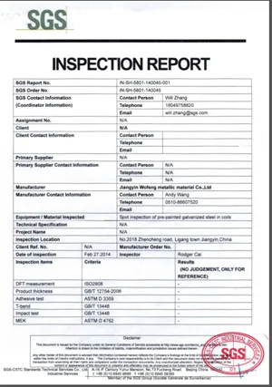Jiangyin Wofeng Metallic Material Co.,Ltd. founded in 2008,the manufacturer of producing various of high-grade Printed PPGI , PPGL and Film Laminated Steel / Aluminum. The company has more than 5 R&D engineers,developing at least 500 kinds of wood grain,stone grain,brick grain,marble grain and camouflage grain Color Coated Steel. The company is the only 100% professional manufacturer that only produce Prepainted and Laminated PPGI and PPGL.