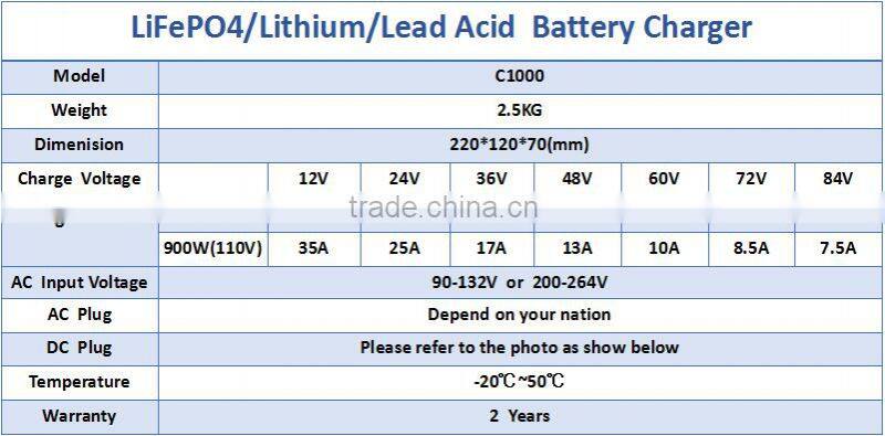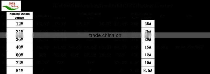 C series --- 2015 new products, adopted new techniques. Advantage: smaller, powerful, high efficiency, high reliability, but low price; No PFC, zero voltage charging function, charge voltage range: 12V~400V, power range: 120W~600W, AC input range selectable by switch, maximum efficiency 94%, built-in fan, no fan, waterproof for option.
