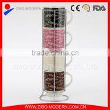 Wholesale Color Glazed Logo Decal Customized Stacking Mugs With Metal Rack