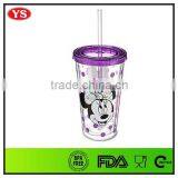 16oz Custom Bpa Free Insulated Double Wall Insert Plastic Straw Tumbler