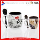 Special Shape Color Ceramic Mug With Color Spoon in Handle