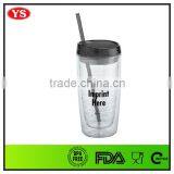 16oz Custom Bpa Free Insulated Double Wall Insert Plastic Straw Tumbler
