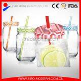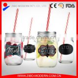Factory Direct Sale Decal Glass Jar Mason Water Mason Jar With Straw