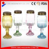High Quality Colored Drinking Glass Jar Tall Cute Mason Jar Custom With Stem