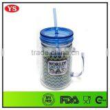 16oz PS Double Wall Plastic Drink Mug Tumbler With Straw