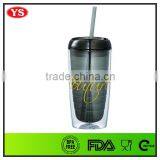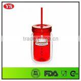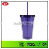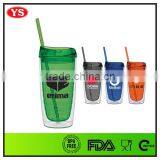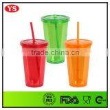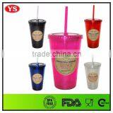 16 Ounce Customized Double Wall Plastic Colored Glass Tumblers With Straw