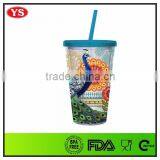 450 ml Customized Plastic Bpa Free Insulated Cup With Straw