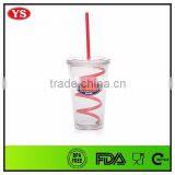 Customized 16 Ounce Double Wall Translucent Plastic Tumbler With Curly Straw