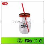Customize 25 Ounce Plastic Single Wall Acrylic Mason Juice Jar With Straw