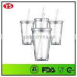 Eco-friendly Double Wall 16oz Clear Acrylic Tumbler With Straw