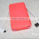 Slim Power Bank 4000mAh Li-polymer With Built-in Micro USB Cable for Smartphone & IPhone 6