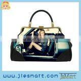 JSMART Lady Shoulder Bag Metal Frame Clip Purse Design Printing