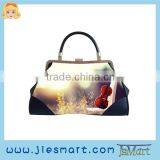 JSMART Lady Shoulder Bag Metal Frame Clip Purse Design Printing