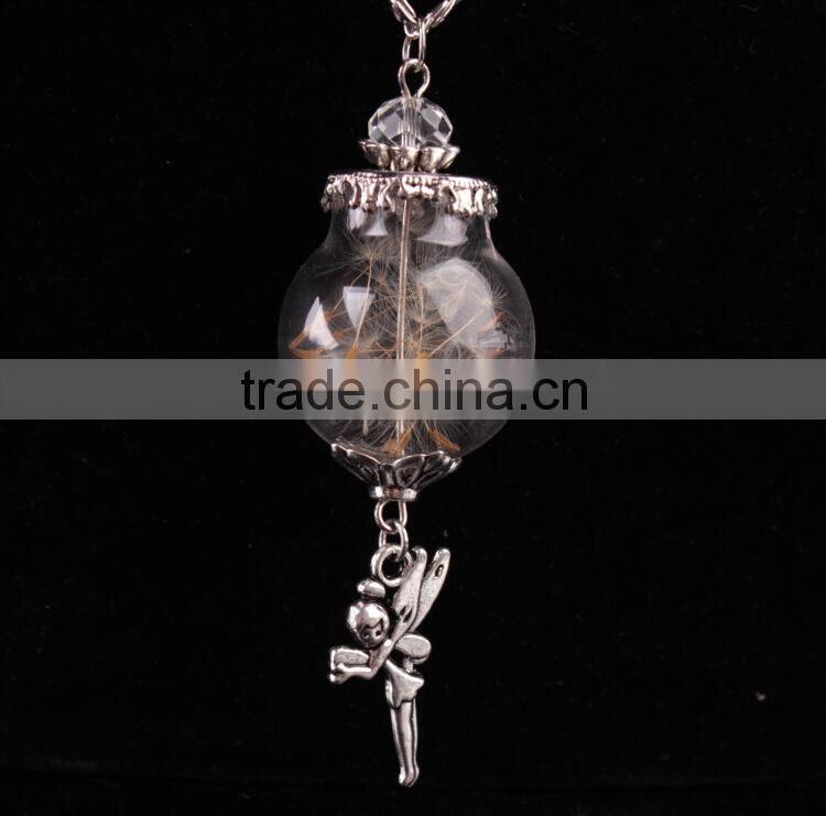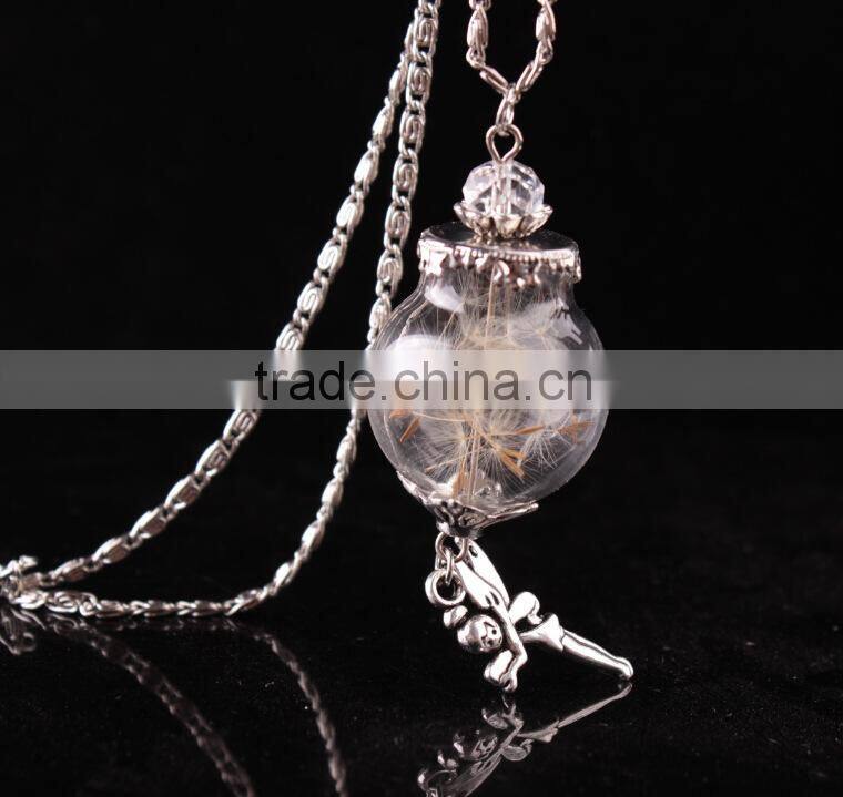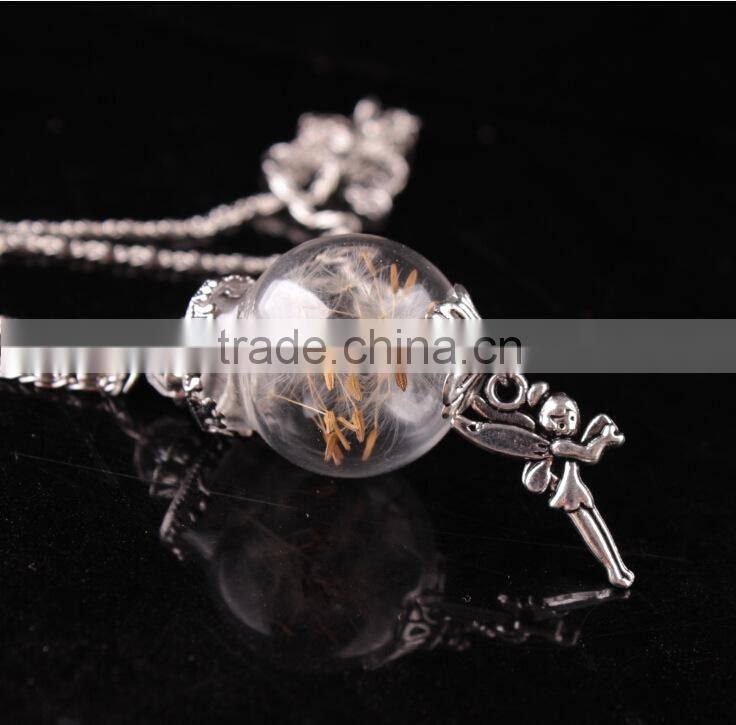 Real Dandelion Seed Jewelry Crystal Glass Ball Dandelion Necklace Alloy Chain Pendant Necklaces For Women