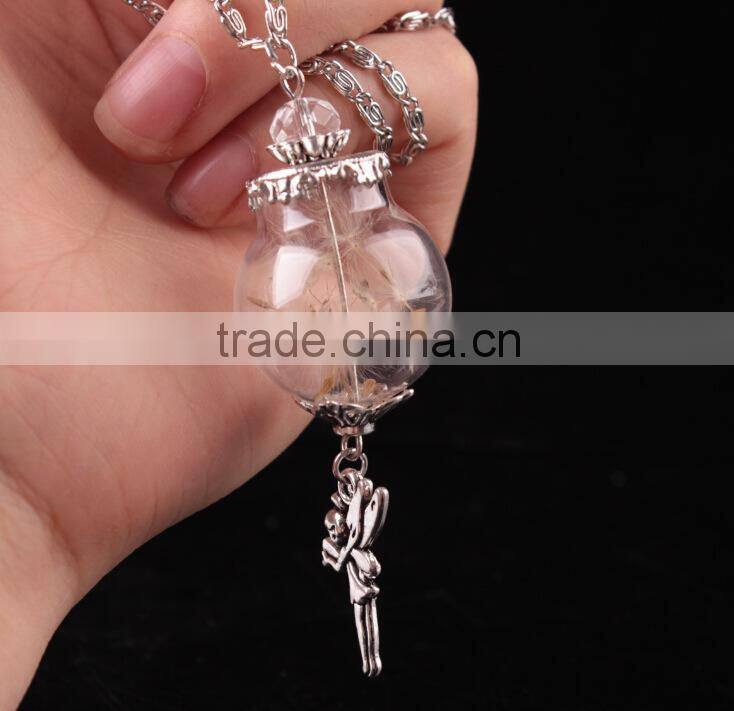 2016 trending perfume bottle necklace pendant dried flower necklace