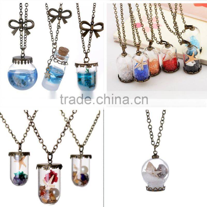 2016 New arrival !!! Glass ball jewelry vintage style sea shell in tube glass wish vial glass bottle necklace
