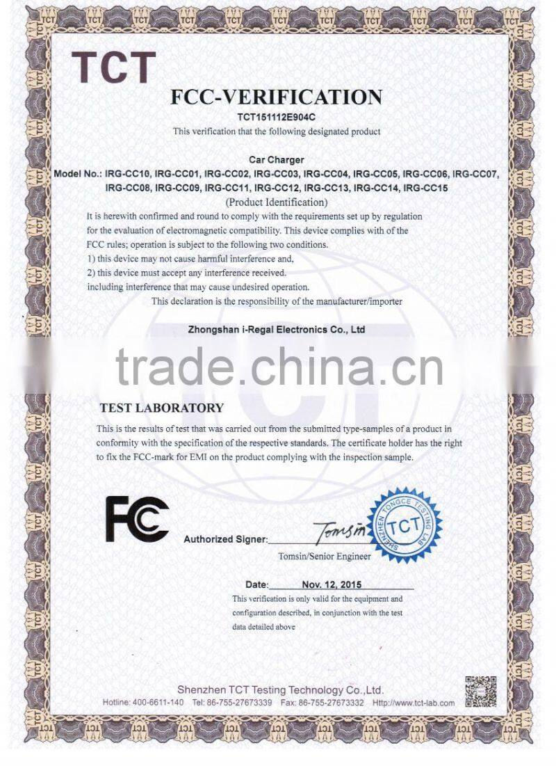 Zhongshan i-Regal Electronics Co., Ltd. is a strong team with professional employees whose working experience over 6 years, specialized in designing and manufacturing travel chargers,car chargers,USB chargers and USB cables with self-developed designs and moulds. 98% goods export per month, mainly exported to Europe, the North and South America, the Middle East and Southeast Asia.