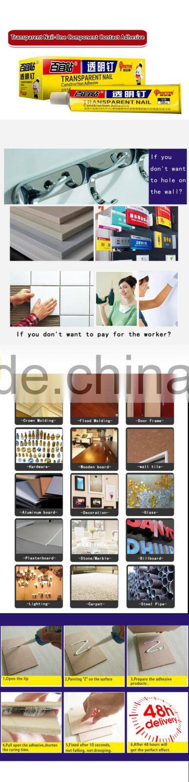 Transparent Nail is maily make by raw materials of rubber , the introduction of advanced technology development of polymer products.Easy to use, no smell, not flowing, no high requirements for the material surfaces .High bond strength after curing,
