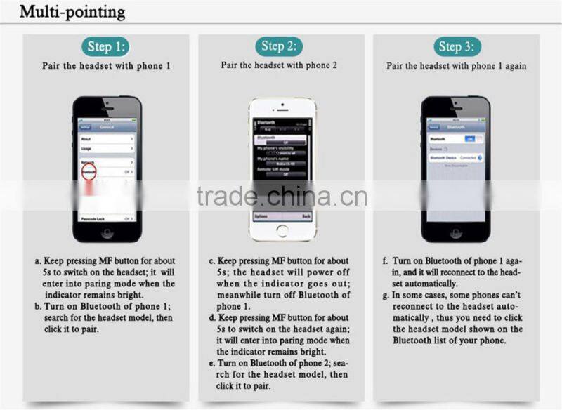 D.If the paring is successful, you'll find that the Blue indicator light flash slowly, which means that the headset is in standby mode ready to make/receive calls.