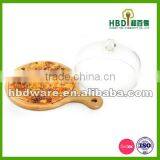 High Quality Glass Cheese Dome With Bamboo Board Wholesale