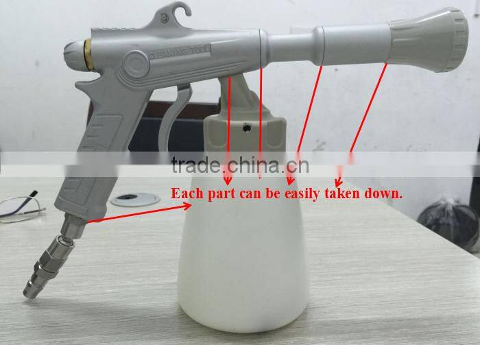 Our new cleaning gun have a special design ,Gun trigger have 2 way switch ,when open trigger ,first have air and second have soup that have better atomization effect. Close trigger gun ,first close soup and second close air .