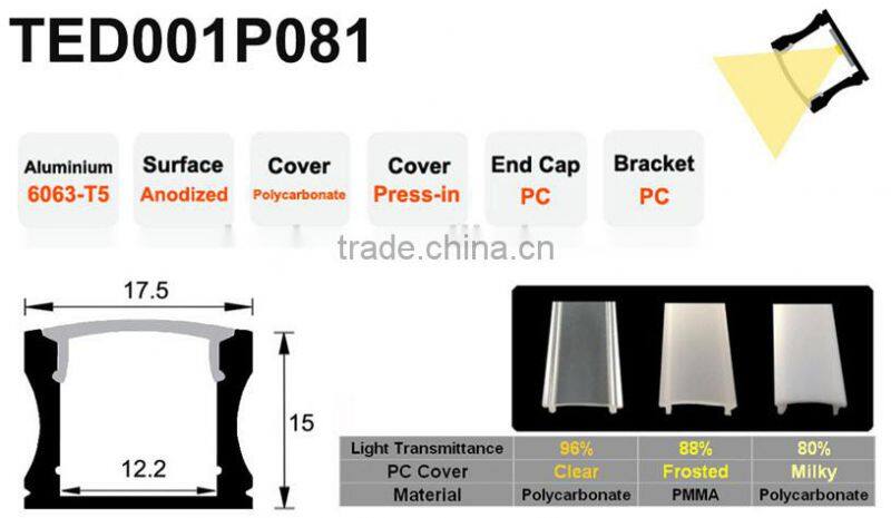 15mm Thick Will Not See LED When Lighting Aluminium Led Profile TED001P081