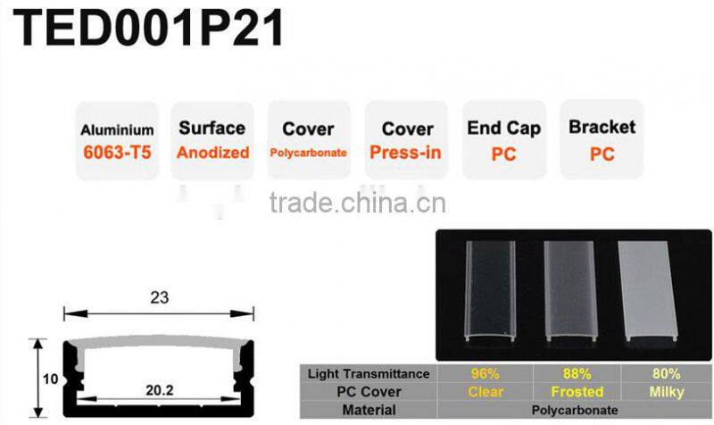 15mm Thick Will Not See LED When Lighting Aluminium Led Profile TED001P081