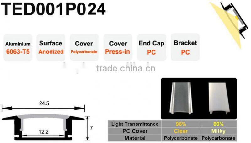 LED Aluminium Profile for Flexible Strips Recessed and Surface Mounted TED001P16